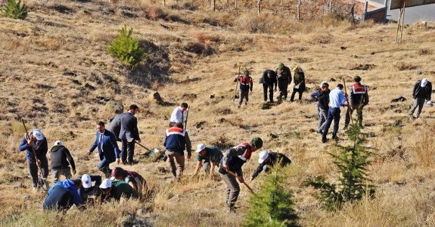 Düzenlenen etkinlikte 500 fidan asker, öğrenci ve protokol tarafından toprakla buluşturuldu.