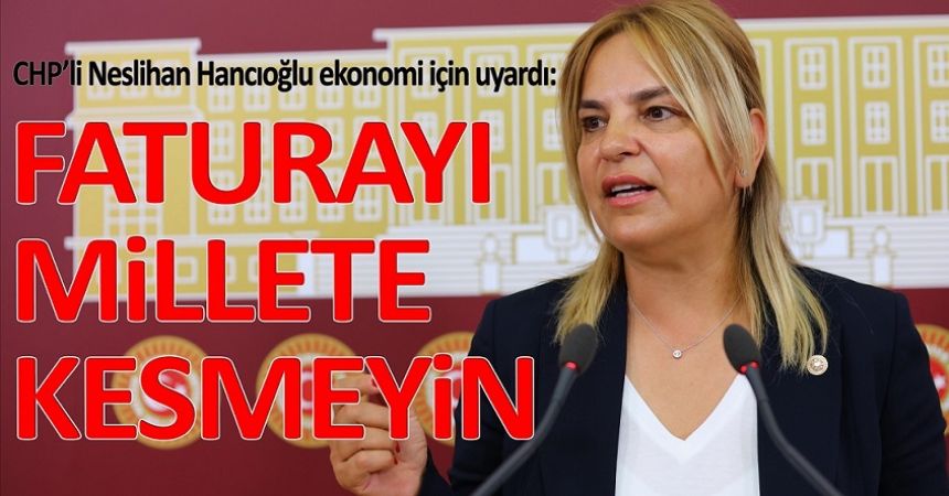 Cumhuriyet Halk Partisi Samsun Milletvekili Neslihan Hancıoğlu, ekonomide yaşanan gelişmeler, krizin seyri ve alınması gereken tedbirler konusunda değerlendirmelerde bulundu. Vatandaşın temel tüketim harcamalarının son bir aylık süre zarfında ortalama yüzde 20 arttığı, gerçek işsiz sayısının 6 milyon kişiye dayandığı, bütçe açığının geçen yıla oranla ikiye katlandığı gerçeği ortada dururken ülkede bir kriz yokmuş gibi davranmanın milletin aklıyla alay etmek olduğunu ifade eden Hancıoğlu, " 'Bu kriz bizim krizimiz değildir' diyenler, faturayı millete kesmeye karar vermişler" dedi.