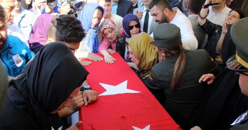 Diyarbakır’ın Lice ilçesinde teröristler ile güvenlik güçleri arasında çıkan çatışmada şehit olan 3 askerden Jandarma Uzman Çavuş Gökhan Bayram’ın (26) cenaze töreni Büyük Cami’de yapıldı. Şehit Gökhan Bayram’ın cenazesi musalla taşına konulduğunda anne Selma Seçkin fenalaştı.