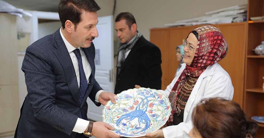 El emeği göz nuru ile ortaya çıkarılan ürünleri inceleyen Başkan Erdoğan Tok, 100 branşta 200 kursumuz ile 5 bine yakın kursiyerlerimizle hem meslek edindirmeyi sağlıyoruz hem de el sanatlarını geleceğe taşıyoruz.Kurslarımızda insanlarımıza mesleki vasıf kazandırıyor, onları üretebilir hale getiriyoruz. Mesleki anlamda yeterlilik kazanarak üretebilir konum kazanan bayanlarımız el emeklerini kazanca dönüştürmeleri konusunda da katkı sağlıyoruz. Mesleki ve el sanatları kurs sayılarında artış sağlayarak, daha kaliteli verimli kursların düzenlenmesi ve hayata geçirilmesi konusunda her türlü desteği vermekteyiz” dedi.