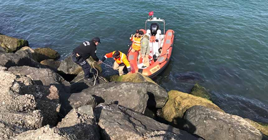 Sahilde yürüyüş yapan vatandaşlar, deniz kenarındaki kayalıklar arasında çöp poşeti içinde bir ceset gördü. Durum hemen polise bildirildi. Olay yerine gelen ekipler, güvenlik şeridi çekip, cesette inceleme yaptı.