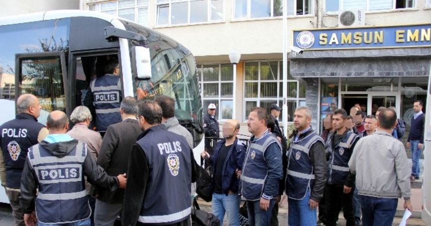Samsun Emniyet Müdürlüğü Kaçakçılık ve Organize Suçlarla Mücadele Şube Müdürlüğü ekipleri, FETÖ/PDY’ye yönelik 4 gün önce sabah 55 adrese 60 ekip ve 250 polisle eş zamanlı operasyon düzenlemiş, operasyon kapsamında örgütün iletişim uygulaması ByLock kullandıkları ileri sürülen kapatılan Aktif Eğitim-Sen üyesi toplam 50 öğretmen gözaltına alınmıştı. Samsun Emniyet Müdürlüğü’nde sorguları tamamlanan 18’i kadın 50 öğretmen, bugün sabah saatlerinde Samsun Adliyesi’ne sevk edildi. Nöbetçi mahkemeye ifade veren 29 öğretmen tutuklanarak Samsun Kapalı Cezaevi’ne gönderilirken, 21 öğretmen ise adli kontrol şartıyla serbest bırakıldı.