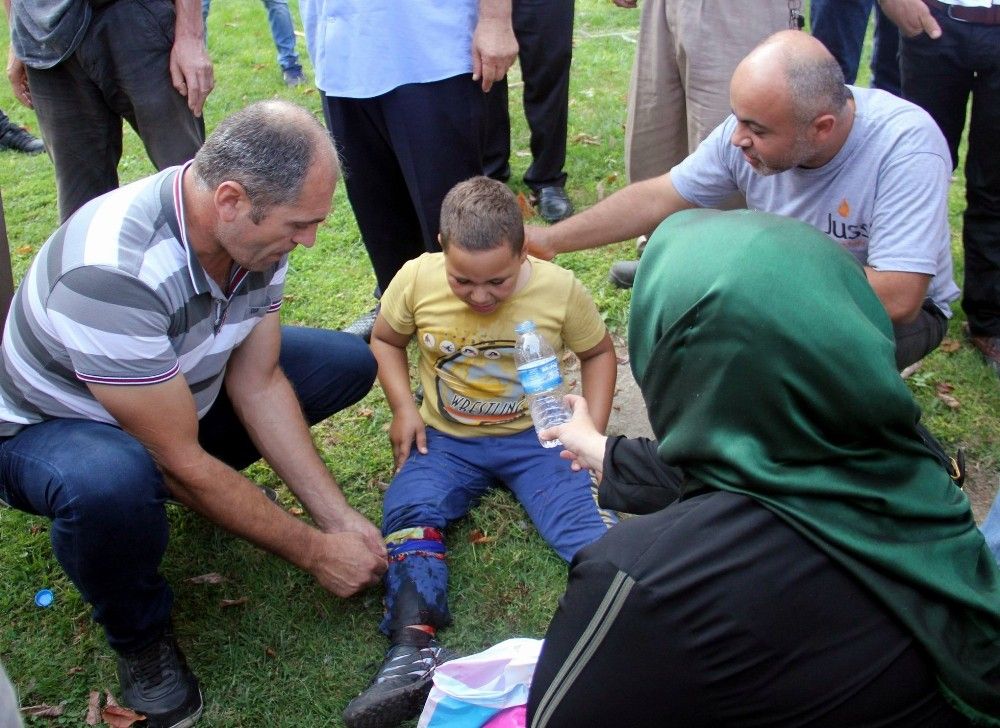 Sağlık ekiplerini görünce acısını unutan Muhammet bu kez de “Bana iğne yapmasınlar. Hastaneye götürmesinler” diye ağlamaya başladı. Sağlık ekiplerince ilk müdahalesi yapılan Muhammet, ambulansla hastaneye kaldırılarak tedavi altına alındı.