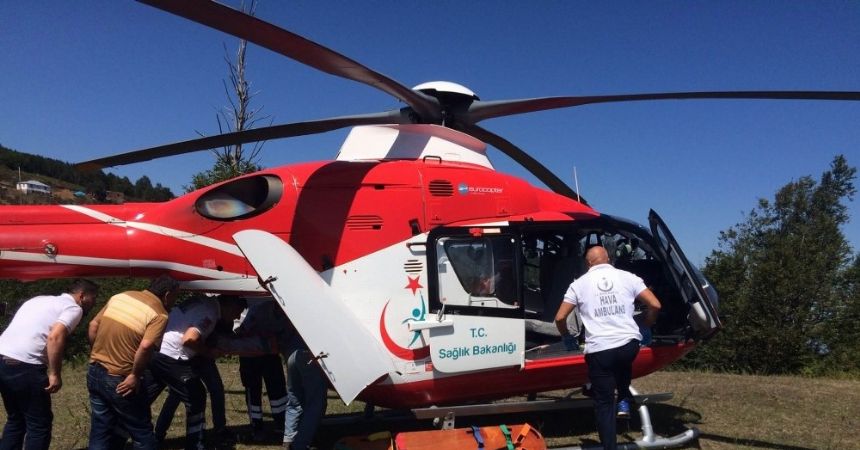 Samsun’da meydana gelen kazada yaralanan kadın ambulans helikopter ile hastaneye kaldırıldı.