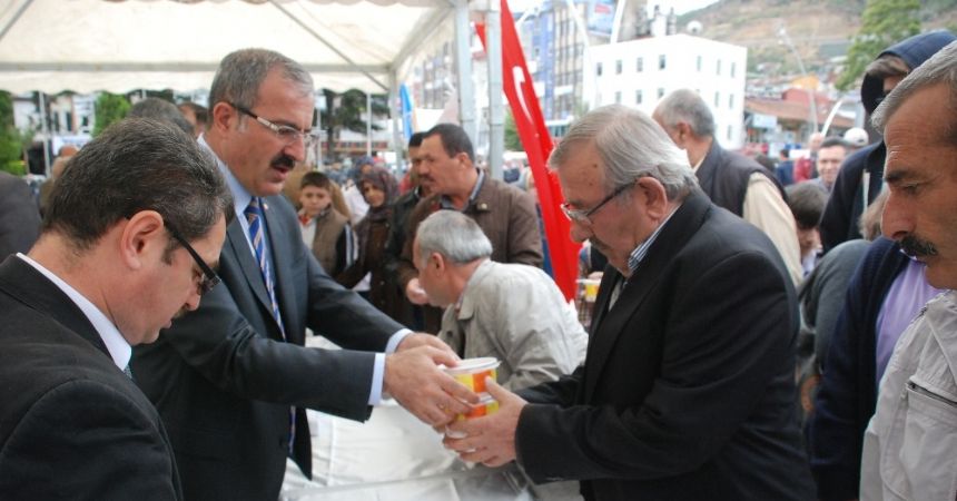 Cumhuriyet Meydanında Vakıflar Bölge Müdürlüğü tarafından Sünnetçioğlu Hacı Abdullah Vakfının ’hayır’ şartını yerine getirmek üzere Tokat Valisi Ömer Toraman, Tokat Belediye Başkanı Eyüp Eroğlu ile birlikte Vakıflar Bölge Müdürü Yılmaz Kılınç tarafından 2 bin kişiye aşure ikram edildi. Vali Toraman, Muharrem ayında aşure geleneğine Vakıflar Bölge Müdürlüğü’nün organizesinde katıldıklarını ifade ederek,"Bugün dağıtılan aşureler 1756 yılında kurulan Sünnetçioğlu Hacı Abdullah Vakfının hayır şartının yerine getirilmesi idi. Bu da vakıf geleneğimizin geçmişten bugüne kesintisiz devam ettiğinin güzel bir göstergesi oldu. 1756 yılında kurulan bir vakfın hayır şartının bugünde çok şükür yerine getirebiliyoruz. Vakıflar hayır kurumları olarak yaşamaya, yaşattırılmaya devam ediyor" diye konuştu.