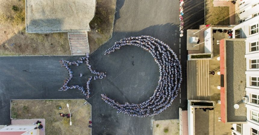 Zile Mesleki ve Teknik Anadolu Lisesi öğrencileri okul bahçesinde 29 Ekim Cumhuriyet Bayramına özel anlamlı bir çalışma yaptı. Öğrencilerin talebi üzerine harekete geçen okul yönetimi ay yıldız görseli için gerekli organizasyonu yaptı. 290 öğrenci bir araya gelerek ay yıldız oluştururken, drone ile görüntülenen çalışmada güzel bir görsel meydana geldi.