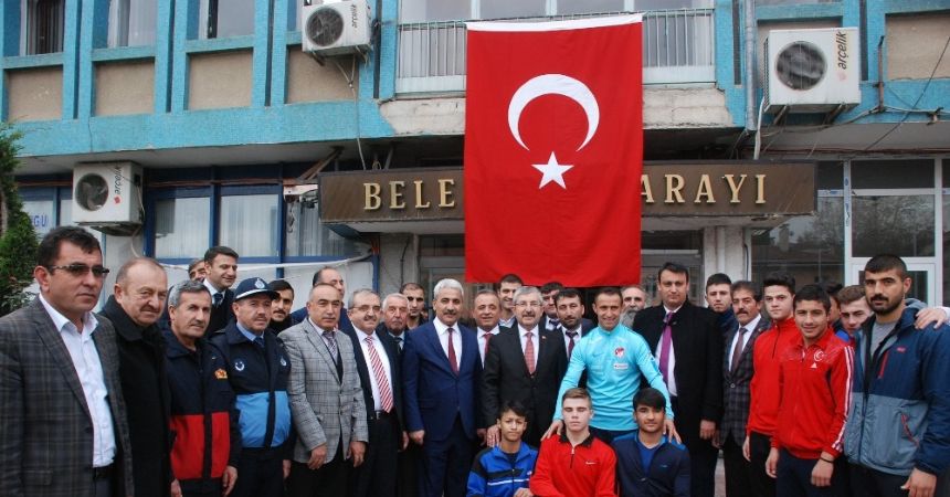 Başkan Vidinel, şampiyon sporcuyu altınla ödüllendirerek çeşitli hediyeler takim etti. Gazi Osman Çakmak ise memleketinde olmaktan dolayı çok mutlu olduğunu belirterek,"En büyük hayalim futbolcu olup milli formayı giymekti. Cenabı Allah onu bizlere gazi olduktan sonra nasip etti. Ben gazi olduğumda sol ayağımı diz altından kaybetmem ömür boyu unutamayacağım bir olaydı. Ama Türk milleti bana Avrupa Şampiyonasında bitiş düdüğünden sonra ’Gol Gazi Osman Çakmak’ demeleri, Gazilik şehitlikten sonra en büyük mertebedir. Bir gazi olarak Avrupa Şampiyonu olmak benim için ayrı bir gururdur. Sayın belediye başkanımızın da adımı meydana vermesinden dolayı teşekkür ediyorum" diye konuştu.