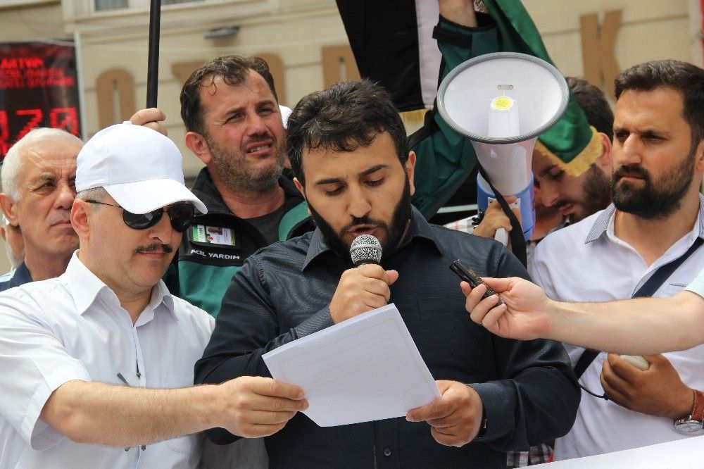 Platform adına konuşan TÜGVA Artvin Şube Başkanı Halil İbrahim Keskin, Mescid-i Aksa’nın Müslümanlar için büyük bir değer taşıdığını dile getirerek "Mescid-i Aksa, alınların secdeyle buluştuğu, gönüllerin Rab ile buluştuğu ilk kıblemiz. Mescid-i Aksa, Müminlerin haykırışı, Müminlerin niyazı. Mescid-i Aksa biz Müslümanlar için büyük değer taşımaktadır. Yarım asırdır işgal altında bulunan Kudüs’te İsrail, bu sefer gözlerini tekrar Mescid-i Aksa’ya dikti. Acımasızca canına kıyılan masum çocukların, sivil insanların kanı İsrail için yeterli olmayıp, alınların secdeye varmasına da engel olmaktalar" dedi.