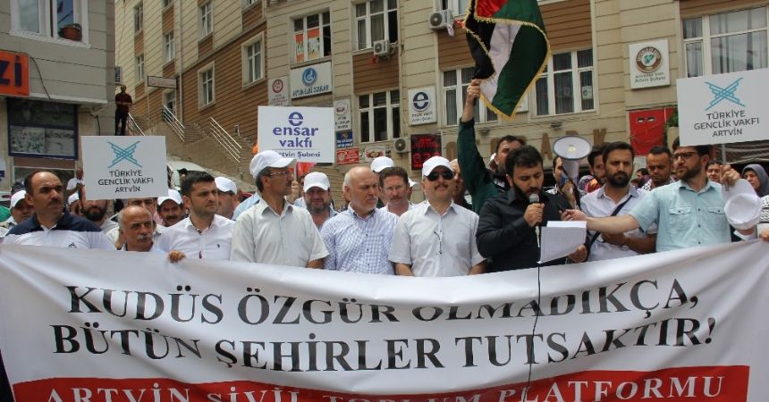 TÜGVA, İHH, Ensar Vakfı, İlim Yayma Cemiyeti, Artvinliler Vakfı ve Memur-Sen’in bir araya gelerek oluşturduğu Artvin Sivil Toplum Platformu, İsrail’in Mescid-i Aksa’da cuma namazını yasaklamasını Artvin’deki Halitpaşa Meydanı’nda toplanarak protesto etti.