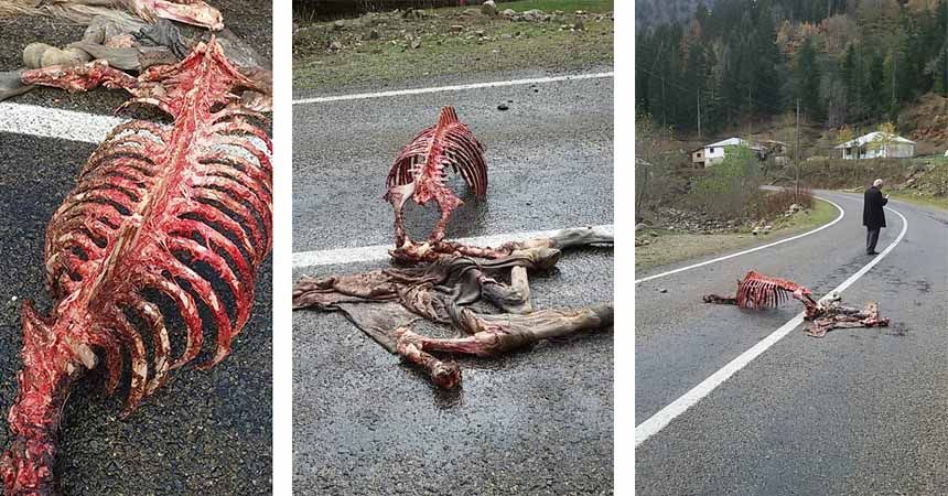 Ayıların saldırdığı attan geriye iskeleti kaldı