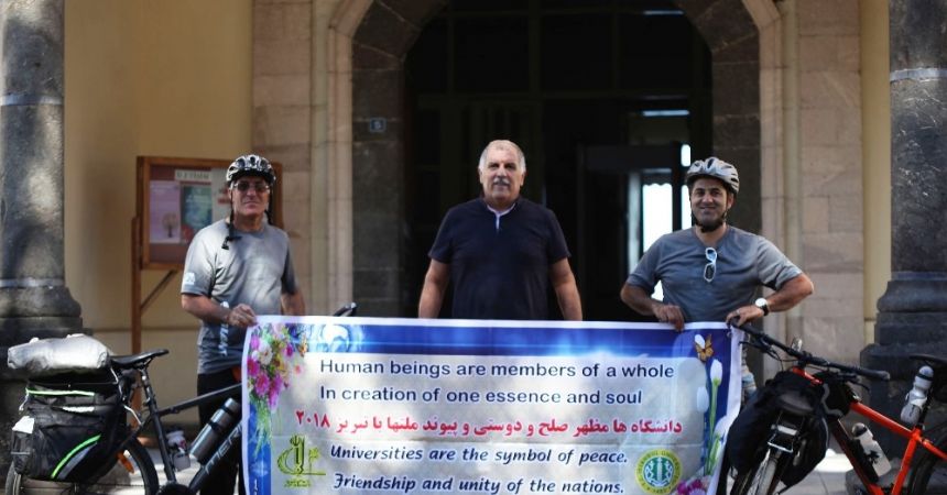 İran’ın Tebriz şehrinin 2018 kültür ve turizm başkenti seçilmesi dolayısıyla düzenlenen etkinlikler kapsamında İstanbul Üniversitesine götürdükleri barış mesajını ulaştırmak için kilometrelerce yol kat ettikten sonra Giresun’a ulaşan Tebriz Üniversitesinde akademisyen olan Ali Zudah ve İsmail Alipur, Giresun Üniversitesi Rektör Danışmanı ve Tebriz doğumlu Yrd. Doç. Dr. Abbas Karaağaçlı tarafından karşılandı. Burada verilen molanın ardından İstanbul’a ulaşmak için tekrar yola çıkacak olan akademisyenler, İHA muhabirine yaptıkları açıklamada hedeflerinin barış ve dostluk olduğunu, bunun için pedal çevirdiklerini söylediler. İranlı akademisyen Ali Zudah, ünlü şair Sadi’nin şiirinden örnek vererek, “Sadi’nin şiiri gibi orada derki, ’İnsanlar aynı bir bedenin uzuvları gibidir, insanın bir uzvu acırsa bütün insanın bedeni acır.’ Bu bağlamda insanların da bir yerinde acı olursa bunu bütün insanlık yaşar. Pedal vuruyoruz barış için, kardeşlik için. Hepimizin babası Hz. Adem, annesi Hz. Havva’dır. Biz kardeş olduğumuzdan dolayı biz bu yolculuğu barış ve dostluk için yapıyoruz” dedi.