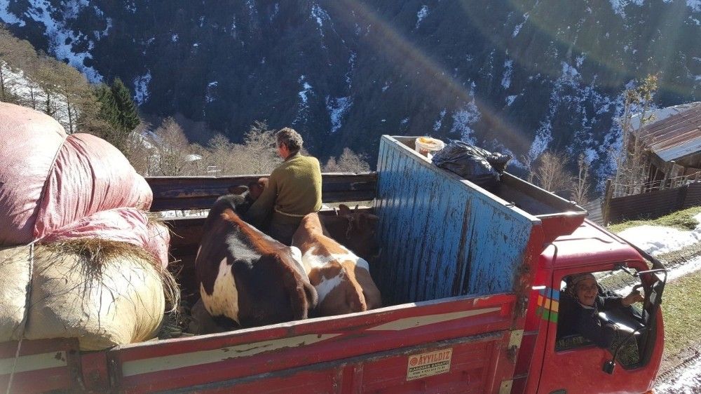 Rize’nin Çamlıhemşin ilçesine bağlı Maselevat Yaylası’nda bir haftadır kar nedeniyle yollarının kapanması soncu mahsur kalan yaylacılar ve hayvanları kurtarıldı.