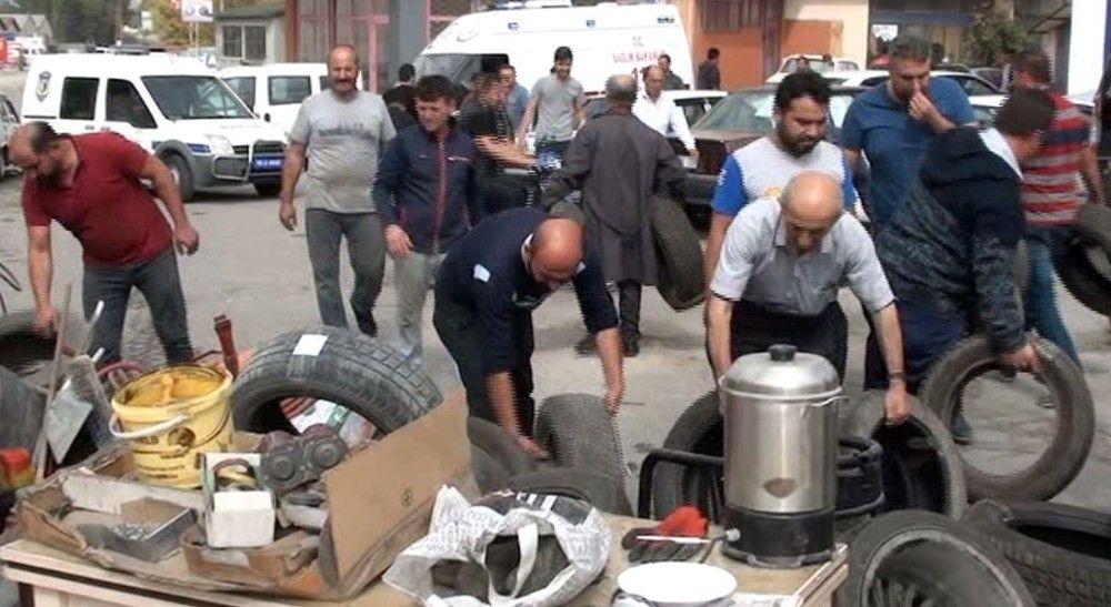 Korku ve panik içinde dükkanlarından çıkan sanayi esnafı yangında zarar gören komşularının iş yerinde bulunan malzeme ve eşyalarını kurtarmaya çalıştı. Sanayideki dükkanlarda boya, tiner, yağ, lastik gibi çok sayıda yanıcı madde bulunduğuna dikkat çeken esnaf, sanayi sitesinden sürekli bir itfaiye aracının bulunmasını talep etti.