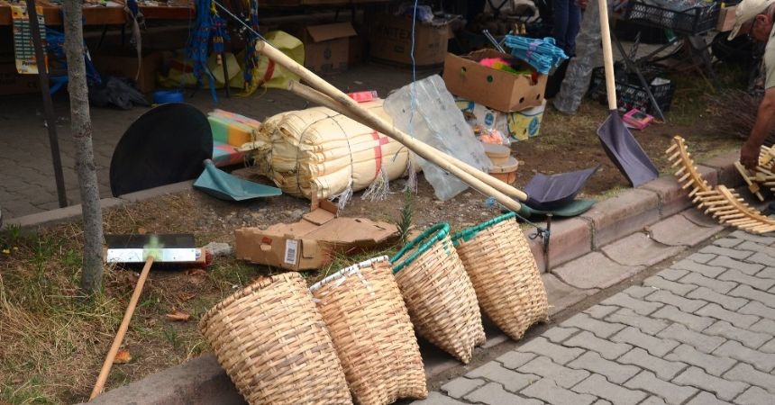 Ordu’nun Fatsa ilçesinde fındık toplama sepetleri halk pazarında tezgahlardaki yerini aldı.