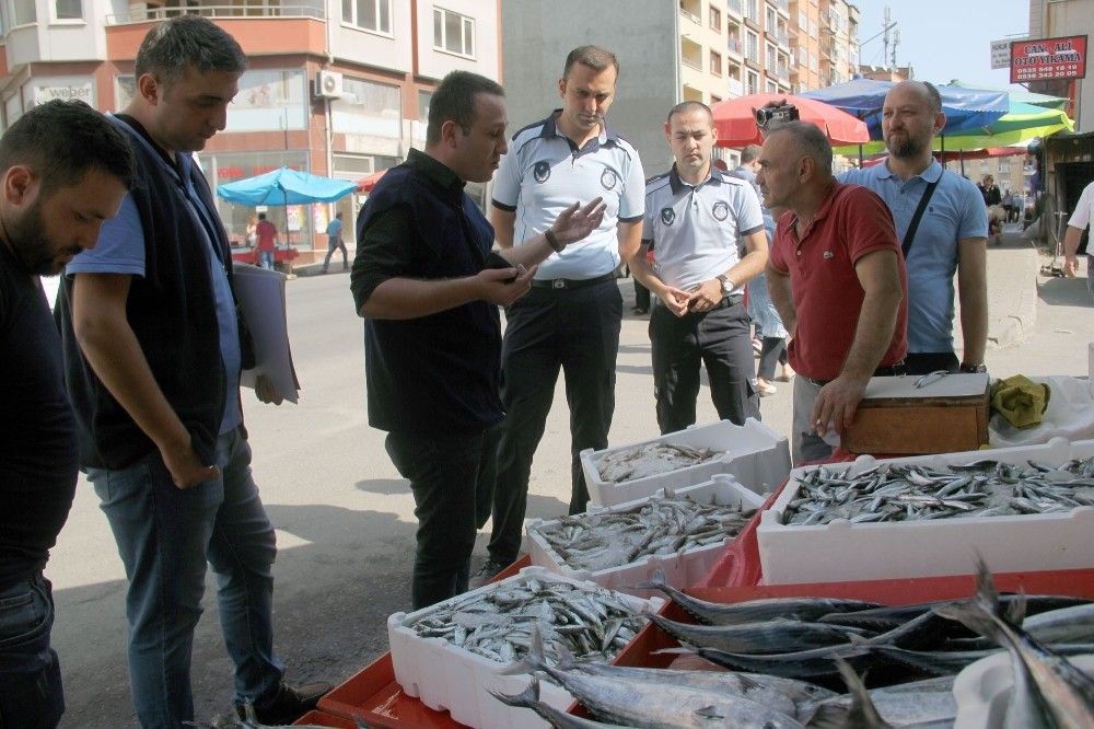Giresun Belediyesi Zabıta Müdürlüğü ve Su Ürünleri Kontrol görevlileri balıkçı tezgahlarında satışa sunulan balıkların standart boyları ve taze olup olmadığını denetledi.