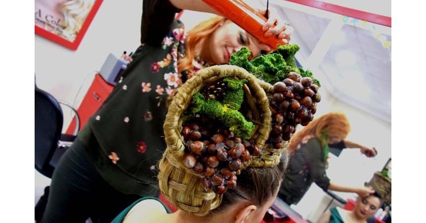 Yüksek topuz fantezi dalında bu modeli tasarladığını belirten Peker, “Farklı olması içinde Giresun, fındık, sepet olsun istedim ve böyle bir konsept oluştu. Tasarımın tamamı saçtan yapıldı. Çotanak fındık, sepet ve yapraklar gerçek, fındık ise sadece aksesuar olarak kullanıldı” ifadelerini kullandı.