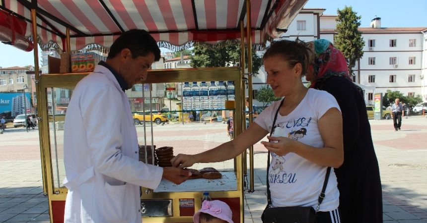 Ünye’de 12 yaşında yakalandığı tavukkarası hastalığı sonrası görme yeteneğini kaybeden evli ve iki çocuk babası 32 yaşındaki Mustafa Varilci, 8 senedir Ünye Cumhuriyet Meydanı’nda simitçilik yapıyor.