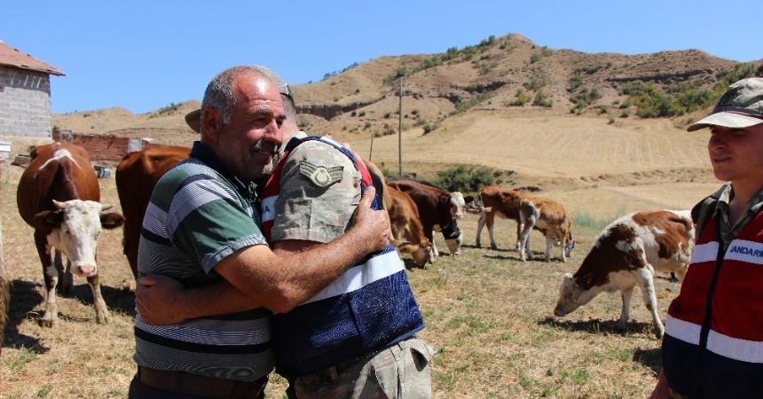 Amasya’da Kurban Bayramı’nın ilk günü hayvanlarının çalınmasıyla hayatının şokunu yaşayan köylü vatandaş, aramalar sonucu hayvanlarını bulup getiren jandarmalara mutluluktan defalarca sarıldı.
