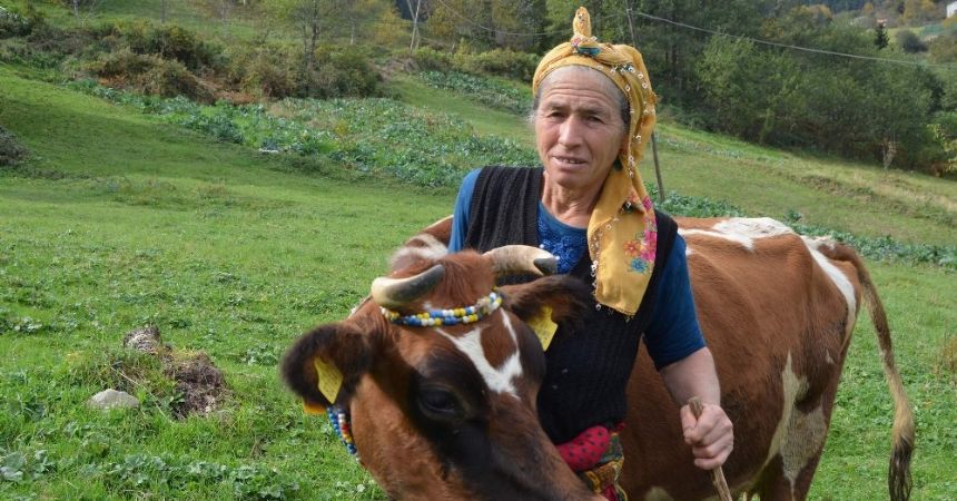 Trabzon’un Düzköy ilçesine bağlı Budaklı mahallesinde yaşayan Gülşen Durmuş, ineklerinden sadece doktora gideceği zaman ayrılıyor.
