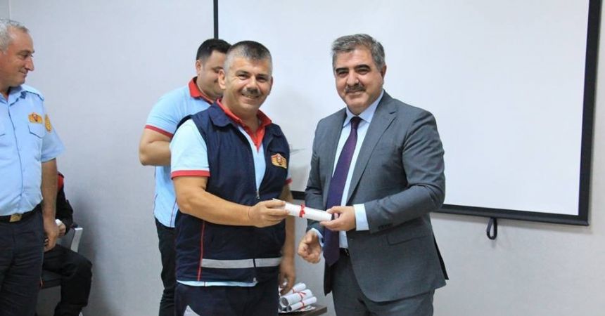 Personeline belgelerini veren Belediye Başkanı Cafer Özdemir, “İtfaiye personelinin hem araç gereç hem de bilgi bakımından donanımlı olması gerekmektedir” dedi.