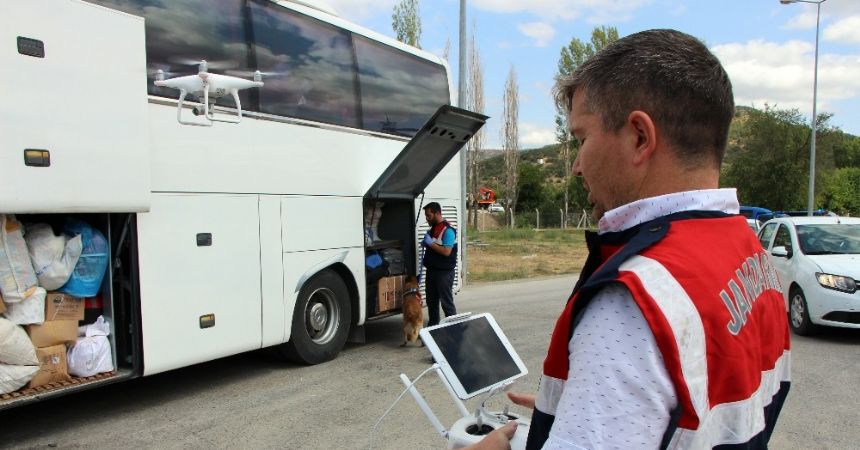 Amasya İl Jandarma Komutanlığı ekipleri, Kurban Bayramı öncesi yoğun trafik akışının yaşanması beklenen noktalardaki trafik denetimlerini ‘drone’ adı verilen insansız hava aracından yararlanarak yapıyor.
