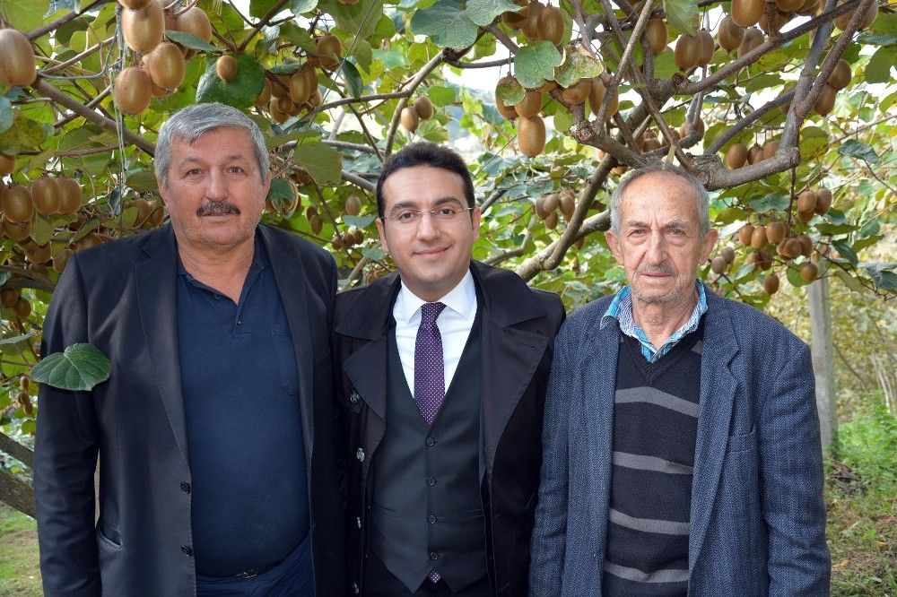 Çiftçilerden kivi üretimi hakkında bilgiler alan Kaymakam Mustafa Uğur Özerden, ilçede kaliteli kivi üretimi yapan çiftçilerle gurur duyduğunun altını çizdi.