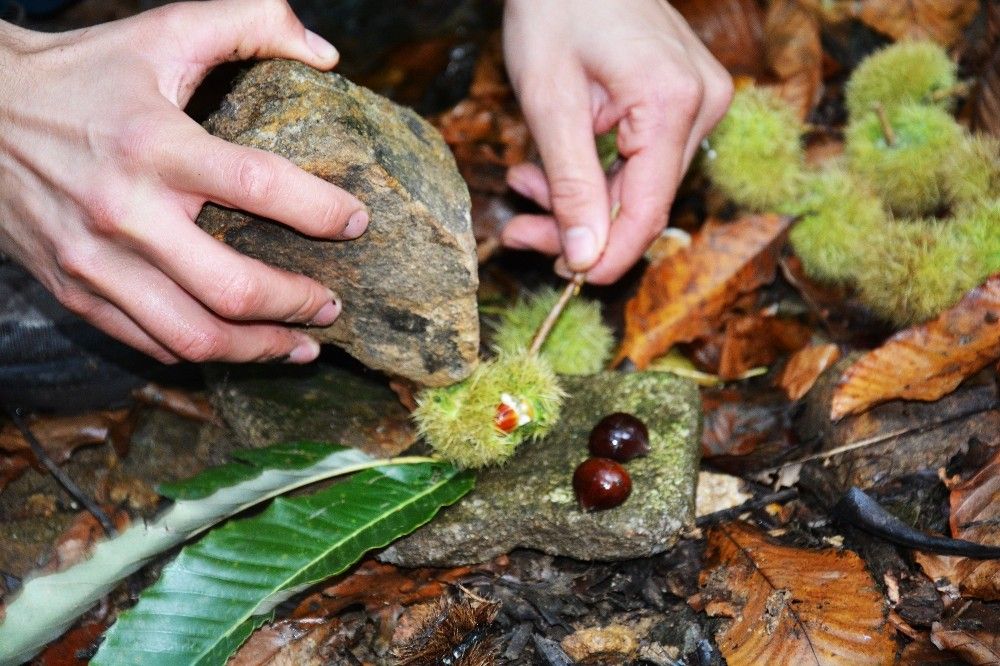 Ordu’da bulunan ormanlarda kendiliğinden yetişen kestaneler vatandaşlar tarafından çok ilginç bir yöntemle toplanıyor.