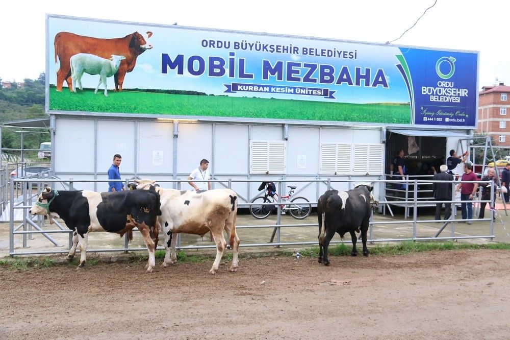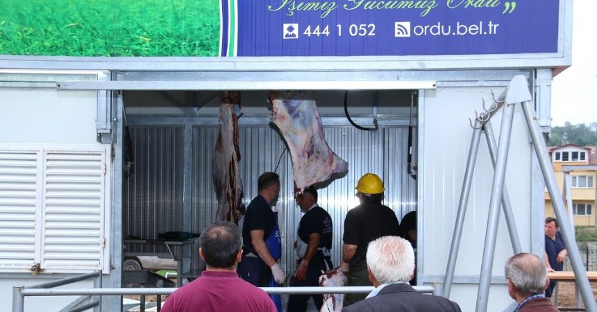 Ordu’da 8 ilçede ve 9 ayrı noktada bulunan mobil mezbahada ve açık kesim alanında kurban kesimleri yapıldı.