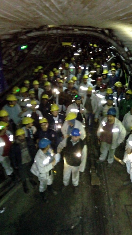 Öte yandan sabah vardiyasına gelen işçiler de maden ocağına girmeden baca ağzında bekleyerek eylem yapan madencilere destek veriyor.
