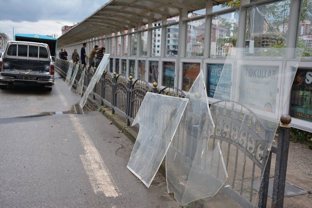 Giresun’un Görele ilçesinde belediye tarafından vatandaşların yağmurdan ve soğuktan korunmaları amacıyla koruma panelleriyle kapatılan Görele Köprüsü’nün şehir magandaları tarafından kırılan camları yenileri ile değiştiriliyor.