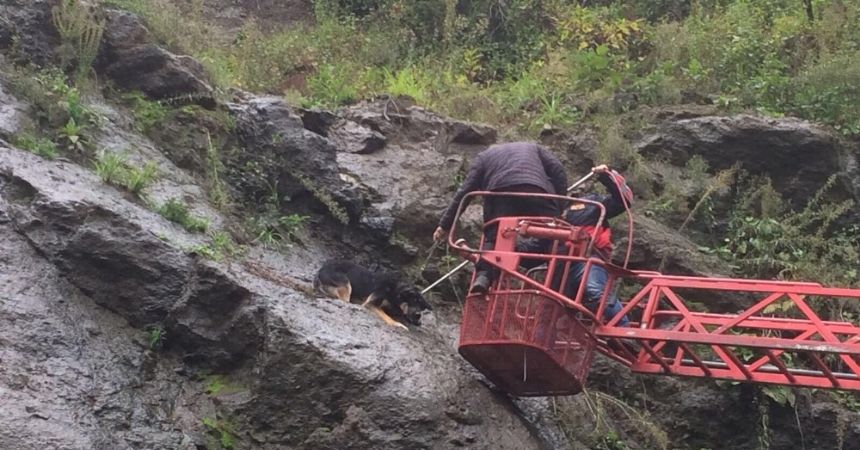Çayeli ilçesi Eskipazar Mahallesinde bulunan kayalıklara tırmanan köpek orada mahsur kaldı. Çevredeki vatandaşlar köpeği fark ederek Çayeli Belediyesi itfaiye ekiplerine haber verdiler. Olay yerine gelen ekipler itfaiye merdiveni ile köpeği mahsur kaldığı yerden kurtardı.