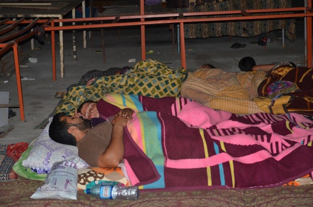 Alaplı ilçesinde sağanak yağış nedeniyle çadırlarını su basan mevsimlik işçilerin bir kısmı Kapalı Spor Salonuna yerleştirildi.