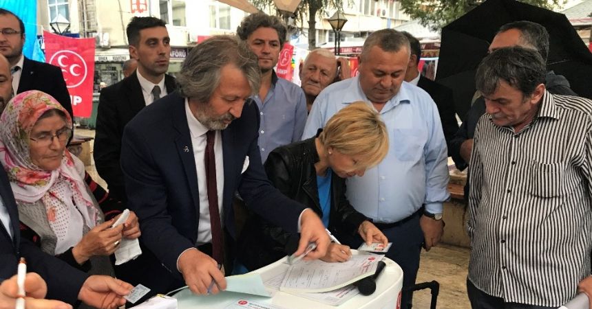 Konuşmaların ardından MHP’li yöneticiler üye olmak isteyen vatandaşların formlarını doldurdu.