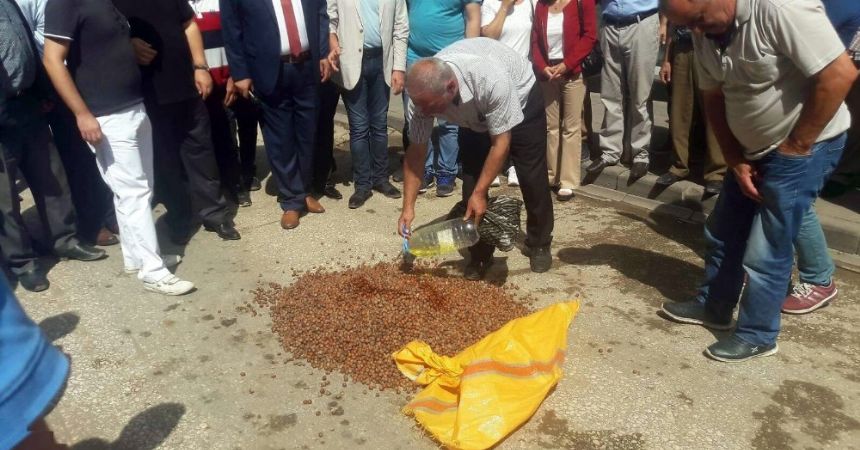 Sokağa dökülen 1 çuval fındığı benzinle yakarak protesto eden grup, daha sonra dağıldı.