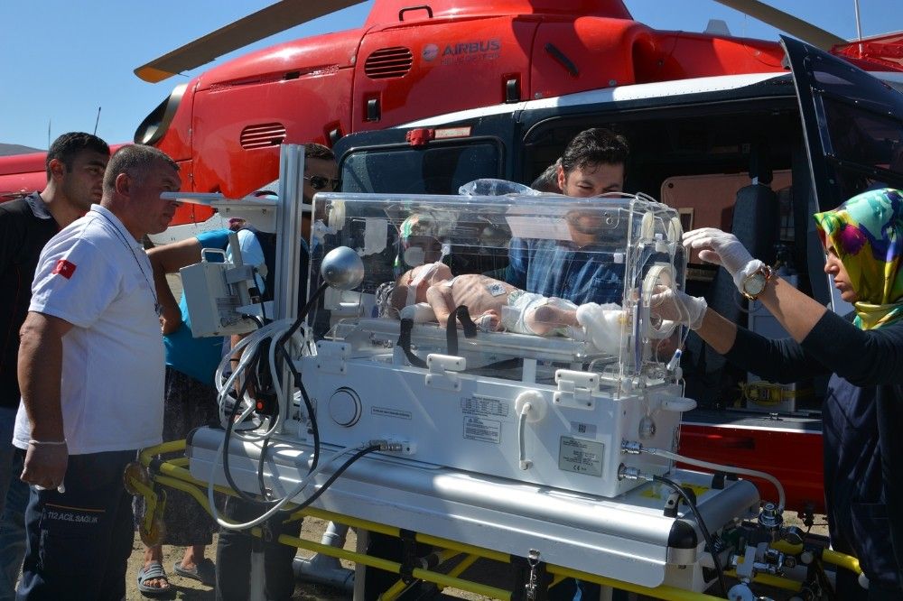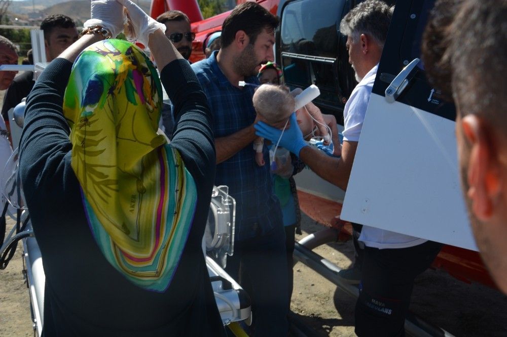 Gürpınar Mahallesi’nde oturan Muhammet Hüseyin Şimşek, dün akşam fenalaşarak ambulansla Sungurlu Devlet Hastanesi’ne kaldırıldı. Devlet Hastanesi’nde kalbi duran ve doktorlarının müdahalesi ile tekrar hayata tutunan minik Muhammet Hüseyin için helikopter ambulans istendi. Sağlık Bakanlığı’na ait helikopter hava ambulansı Atatürk Stadyumu’na inerek minik Muhammet Hüseyin’i Konya Meram Tıp Fakültesine götürdü.