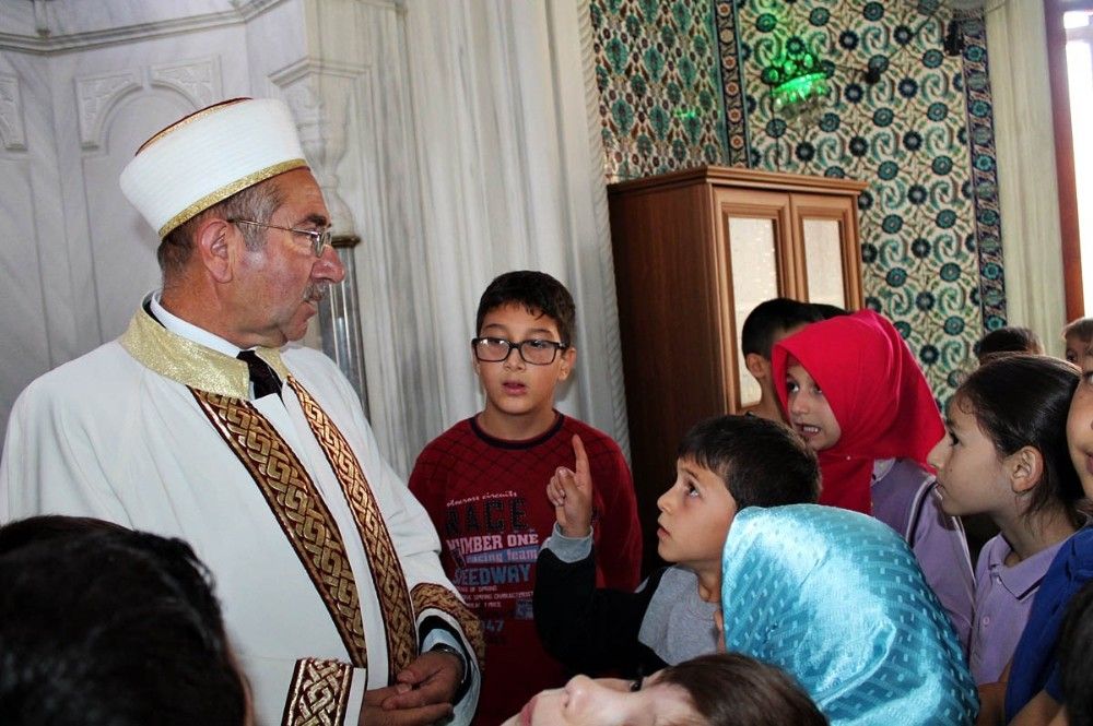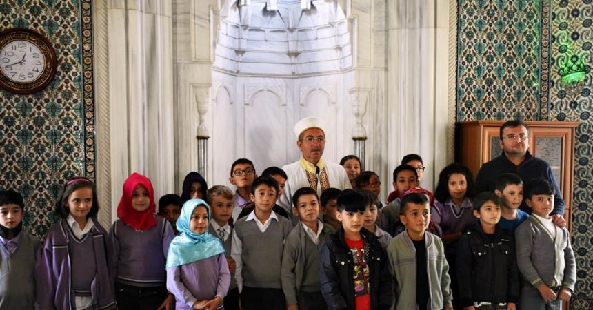 Öğrencilerin soruları karşısında zorlanan ilçe Baş Vaizi Muhsin Özdemir çocuklarla cami içinde hatıra fotoğrafı çektirerek cami ziyaretinden dolayı öğrencilere teşekkür etti.