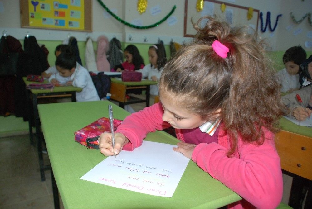 Öğrencilerden Elçin Naz Ateş mektubunda “Sayın Donald Trump, hepimiz kardeşiz. Birbirimizi sevelim, birbirimizde saygı duyalım. Kudüs, İsrail’in başkenti olmamalı. Bunu istemiyoruz, savaş istemiyoruz. Barış dolu bir dünya istiyoruz. Savaşlarda çocuklar ölmemeli. Çocuklar ağlamamalı, anneler ve babalar ağlamamalı. Haydi dünya barışı için çalışalım. Türkiye’den çocuklar” sözlerine yer verdi.