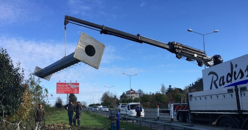 Ordu’da görüntü kirliliğine sebep olan totem tipi reklam tabelaları kaldırılıyor.