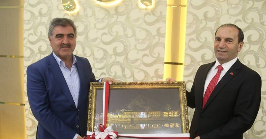 Amasya Belediye Başkanı Cafer Özdemir, ildeki bir yıllık görevinin ardından merkez valiliğine atanan Vali Salih Işık’a sürpriz bir tablo hediye etti.