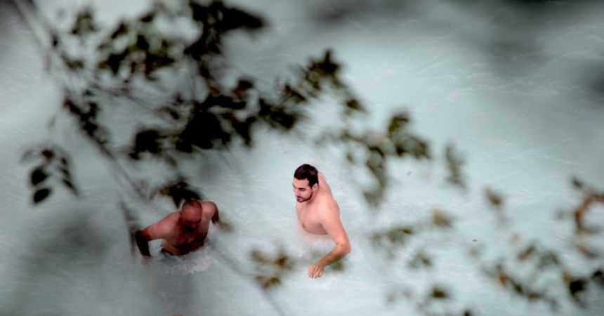Mavi Gölü görmek için İstanbul’dan otostopla gelen Sinoplu Can Ustaoğlu, gölü sosyal medyada gördüğü ve buraya kamp atıp yüzmek için geldiğini söyledi.