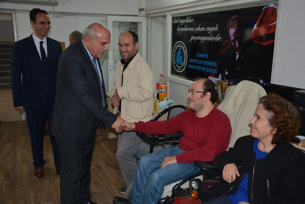 Sinop Valisi Hasan İpek, Türkiye Sakatlar Derneği Sinop Şubesini ziyaret ederek engellilerin problemlerini dinledi.