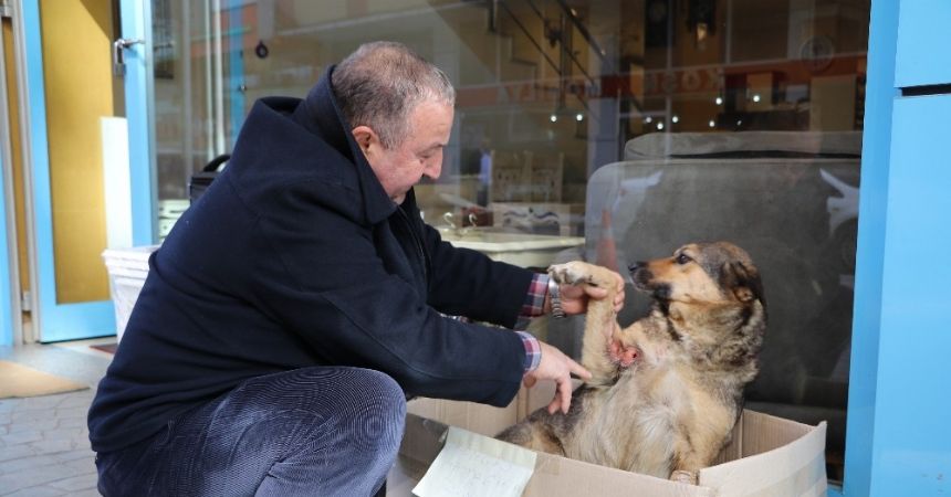 Edinilen bilgiye göre, şehir merkezinde yolun karşısına geçmek isteyen sokak köpeğine plakası alınamayan bir otomobil çarptı. Otomobilin çarptığı köpek acı içinde yerde yatarken, duyarlı bir esnaf yaralı köpeği alarak veterinere götürdü. Yapılan ilk müdahalenin ardından köpeği sahiplenen 40 yıllık esnaf Mehmet Meral (56) yaralı köpeğe kartondan bir yuva yaparak iş yerinin önüne koydu. Yuvanın önüne ise ’Köpeğin yatağına dokunma’ yazısı astı.