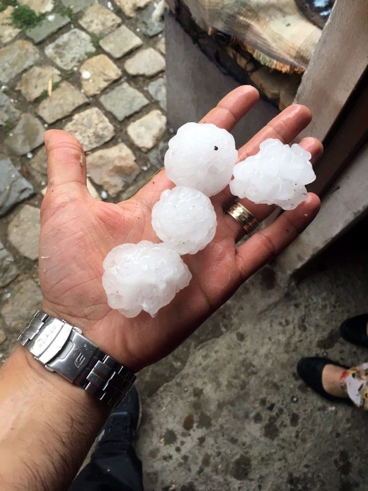 Kastamonu’nun Seydiler ilçesinde yumurta büyüklüğünde yağan dolu görenleri şaşırttı. Paniğe neden olan dolu tarım arazilerine ve bazı araçlara zarar verdi.