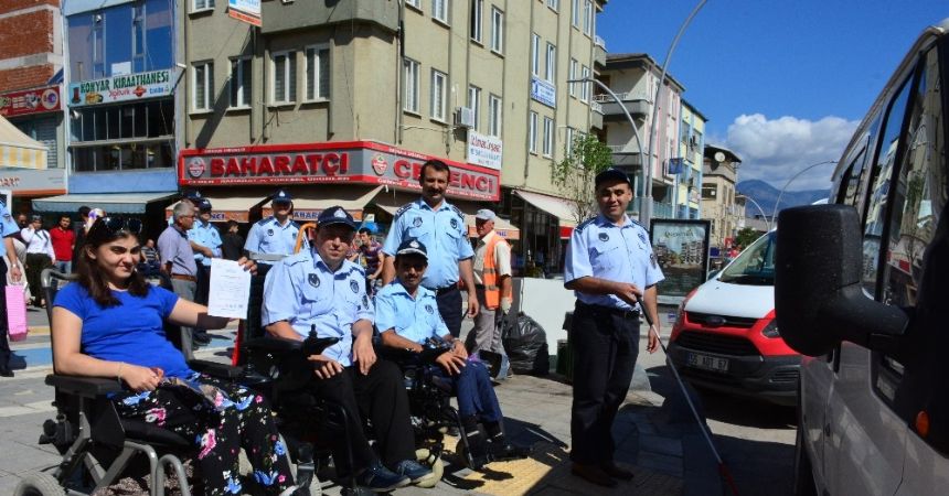 Tokat’n Erbaa ilçesinde Zabıta Haftası dolayısıyla zabıta ekipleri engellilere zabıta üniforması giydirip, birlikte uygulama yaptı.
