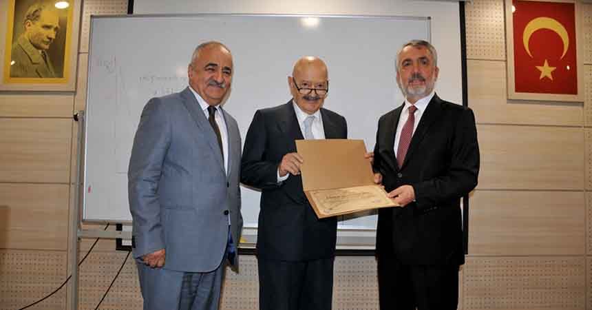 Açılış dersinin ardından Rektör Prof. Dr. Sait Bilgiç, Prof. Dr. Fevzi Köksal’a günün anısına fidan sertifikası takdim ederken Fen Edebiyat Fakültesi Dekanı Prof. Dr. Bekir Batı da plaket ve ismini konferans salonuna verilmesini onaylayan OMÜ Senato Kararnamesini hediye etti.