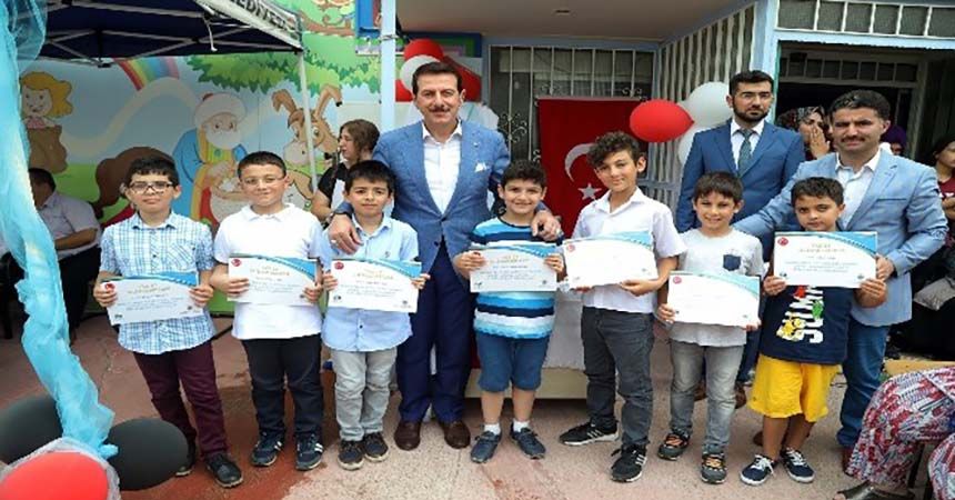 Yaz Kursundan mezun olan öğrencilere belgelerini takdim eden Kaymakam Atlamaz ve Başkan Tok, velilere çocuklarını böyle güzel bir günde yalnız bırakmadıkları için ve yoğun katılım gösterdikleri için teşekkür etti.