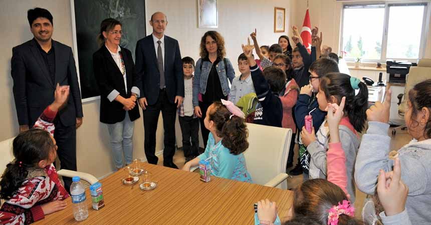 Minik öğrenciler ardından Rektör Yardımcısı Prof. Dr. Vedat Ceyhan’ı makamında ziyaret etti. Öğrencilerle tek tek tanışıp sohbet eden Ceyhan, onlara çok çalışmalarını ve hayallerinden vazgeçmemelerini tembih ederek “Öncelikle yeni eğitim-öğretim yılının bütün öğrencilerimiz, emektar veli ve öğretmenlerimiz adına hayırlı ve verimli olmasını diliyor ve başarı dolu bir yıl geçirmelerini temenni ediyorum. Minik dostlarımızın da ziyareti bizleri çok memnun etti. Ülkemizin yarınları olacak bu öğrencilerimizin yolları ve bahtları açık olsun. Onlara sahip çıkmak, ülkemizin geleceğine sahip çıkmaktır. Çocuklarımızı ve gençlerimizi çalışkan, araştıran, sorgulayan, ülkesine ve milletine bağlı kuşaklar olarak eğitmek ve yetiştirmek hepimizin önceliği ve sorumluluğudur.” şeklinde konuştu.