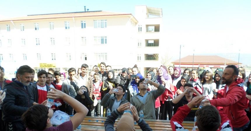 Samsun’un Vezirköprü ilçesinde Hatice Kemal Kayalıoğlu Fen Lisesi Dünya Su Günü etkinlikleri düzenledi. Öğrencilerin dünyanın su rezervleri hakkında bilgilendirilmesi, su kaynaklarının israf edilmemesi, suyun tabiat ve insan yaşamındaki önemini kavratmak amacıyla afişler ve broşürler okulun çeşitli yerlerine asılarak su konusuna dikkat çekildiği belirtildi. Öğrencilere hafta içerisinde derslerde suyun önemi anlatıldığı, su hakkında okul içerisinde ödüllü şiir yarışması düzenlendiği açıklandı. Suyun insan sağlığı açısından önemi konusunda farkındalık oluşturmak amacıyla 92 öğrencinin katılımıyla öğrenciler ve öğretmenler arası ödüllü su içme yarışması düzenlendiği kaydedildi. Sağlıklı ve yeterli su içme konusunda yapılan etkinliklerle suyun önemine dikkat çekmek istediklerini belirten öğrenciler, okulda yapılan etkinliğin amacına ulaşması için bu tür bilinçlendirme çalışmasının yıl boyu devam etmesi gerektiğini söylediler. Öğrencilerin dünyanın su rezervleri hakkında bilgilendirilmesi, su kaynaklarının israf edilmemesi, suyun tabiat ve insan yaşamındaki önemini kavratmak amacıyla afişler ve broşürler okulun çeşitli yerlerine asılarak su konusuna dikkat çekildiği belirtildi. Öğrencilere hafta içerisinde derslerde suyun önemi anlatıldığı, su hakkında okul içerisinde ödüllü şiir yarışması düzenlendiği açıklandı. Suyun insan sağlığı açısından önemi konusunda farkındalık oluşturmak amacıyla 92 öğrencinin katılımıyla öğrenciler ve öğretmenler arası ödüllü su içme yarışması düzenlendiği kaydedildi. Sağlıklı ve yeterli su içme konusunda yapılan etkinliklerle suyun önemine dikkat çekmek istediklerini belirten öğrenciler, okulda yapılan etkinliğin amacına ulaşması için bu tür bilinçlendirme çalışmasının yıl boyu devam etmesi gerektiğini söylediler.