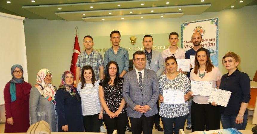 Kursiyerlere sertifikalarını veren Atakum Belediye Başkanı İshak Taşçı, hangi alanlarda girişimde bulunacakları hakkında bilgi aldı. Başkan Taşçı, daha sonra kursiyerlerle birlik objektiflere poz verdi.