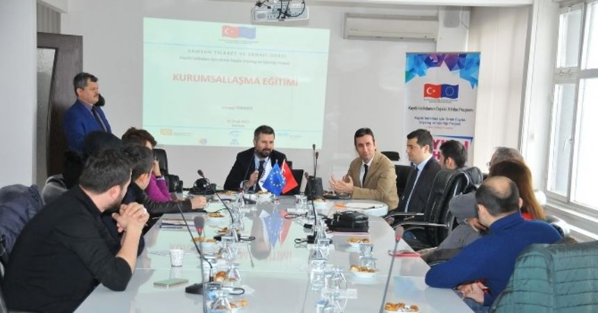 Çalışma ve Sosyal Güvenlik Bakanlığı, Avrupa Birliği ve Mali Yardımlar Dairesi Başkanlığı’nın sözleşme Makamı olduğu, Kayıtlı İstihdamın Teşviki II Hibe Programı kapsamında Samsun TSO tarafından uygulanmakta olan “Kayıtlı İstihdam İçin Ortak Fayda Diyalog ve İşbirliği Projesi”nin eğitim ve bilinçlendirme faaliyetleri kapsamında, firmalara yönelik kurumsallaşma eğitimi düzenlendi. Samsun TSO Davut Altan Meclis Toplantı Salonu’nda gerçekleştirilen programın açılış konuşmasını yapan Oda Genel Sekreter Yardımcısı Necmi Alıç, Samsun’un ve bölgenin ihtiyaçları doğrultusunda sınai ticari ve sosyal bakımdan ülke kalkınmasına destek sağlamak için projeler üreterek, çalışmalar gerçekleştirdiklerini söyledi.